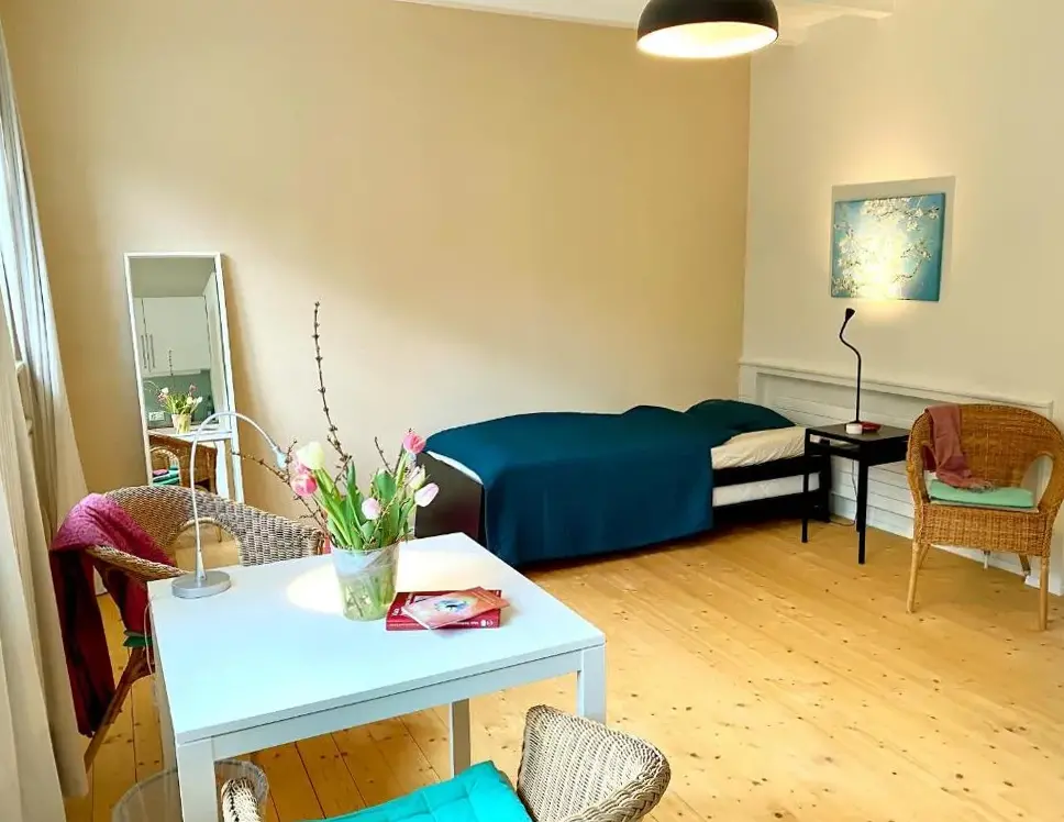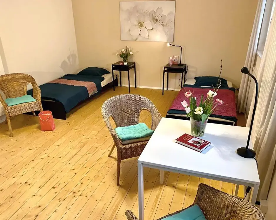 Saubere und ordentliche Unterkunft mit einem sehr einladenden Gastgeber. Etwas schrullig, aber ein bequemer warmer Ort zum Verweilen. Leicht zu speichern unsere Witze und exzellentes WLAN.
